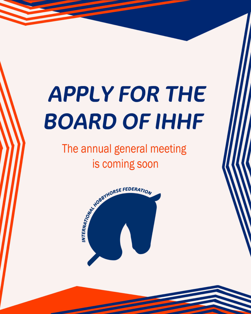 All member organizations are invited to gather to choose the new board of IHHF, decide the joining and membership fee together and acknowledge the freedom of responsibility to the previous board and chair. As the name says, this procedure takes place every year, around the same time. In this letter we are inviting everyone interested to apply to the board of International Hobbyhorse Federation.